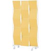 交互に張られた布地が、立体的な隙間をつくるので、光を通しながら視線を遮ります。空間のアクセントになるデザインとカラーです。