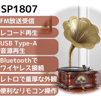 インテリアとしても楽しめる昭和レトロの蓄音機。(卓上タイプ)レコード(LP /EP)再生。Bluetoothでワイヤレス接続。USB Type-A音源再生。FMラジオ機能。高音質な30W、4スピーカーオーディオ出力。便利なリモコン付き。