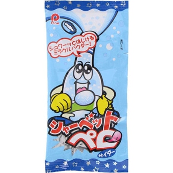 シュワシュワパウダーをつけて楽しむサイダー味の棒付きキャンディです。