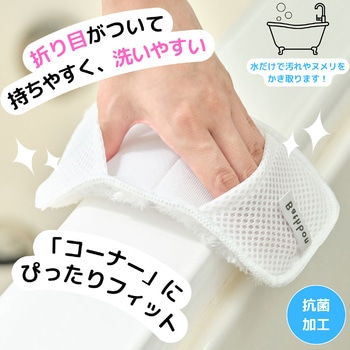 水だけでも汚れをかき取る。ソフトな繊維だからデリケートなシリコンコーキング部もOK。