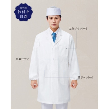 厨房や給食センターなど、火気を扱う現場に最適な、男性用の調理衣です。丈夫で燃えにくいカツラギ綿素材を使用し、安全性と耐久性に優れた設計。前身頃は比翼ボタン留め仕様で、すっきりとした印象を与えます。左胸・両腰にはポケットが付いており、小物の収納にも便利です。袖口にはゴムが入っているため、腕まくりしてもずり落ちにくく、作業中も快適です。