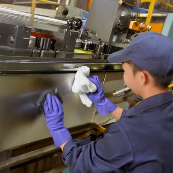 作業性に優れた、袖の短い塩化ビニールあつ手手袋です。天然ゴム製の手袋に比べて油に強い、塩化ビニール製の手袋です。手にフィットし、しなやかで疲れにくいため、長時間の作業でも快適さを保ちます。内側の植毛が汗を吸収し、快適な肌触りを提供するとともにスムーズな着脱を実現します。指や手のひらにスベリ止め加工が施されており、優れたグリップ力を発揮します。