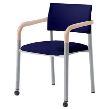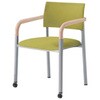 4本脚前脚キャスタータイプ ウッド肘付 背パッド付 シルバーフレーム