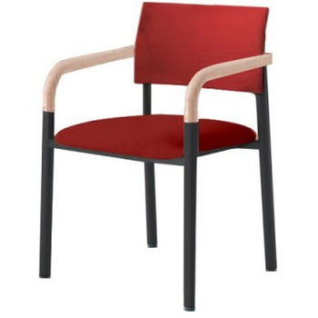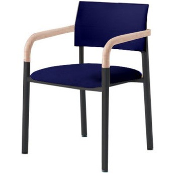 4本脚タイプ ウッド肘付 背パッド付 ブラックフレーム