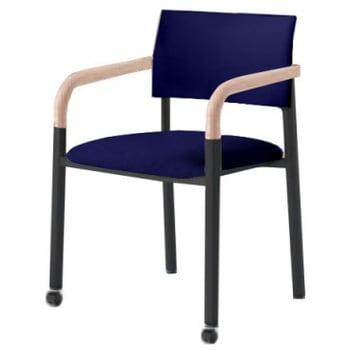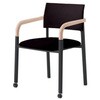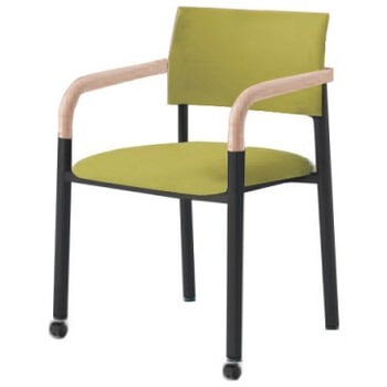4本脚前脚キャスタータイプ ウッド肘付 背パッド付 ブラックフレーム