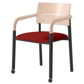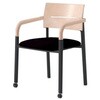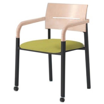 4本脚前脚キャスタータイプ ウッド肘付 背パッドなし ブラックフレーム