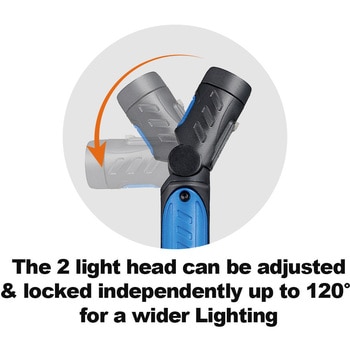 1つのスイッチボタンで2つのヘッドをコントロールできます。2つのヘッドが独立して120°まで調整&ロックでき、より広い照明が可能です。