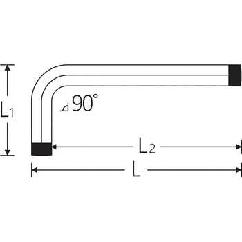 ロングタイプのボールポイント六角棒レンチ。ボール部では25°まで傾けて回す事が可能。クロームバナジウム鋼製。
