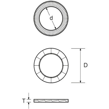 極薄亜鉛クロムフリーコーティングの緩み止めスチールワッシャー。幅広タイプ。ノルトロックの緩み止めシステムは2枚組のワッシャーから構成しており、内側のカム面とカム面を向かい合わせにして使用します。カムの角度(α)はボルトのネジリード角度(β)よりも大きく設計されており、外側は放射状のリブを刻んでおります。ノルトロックをボルトナットにセットし締結していくと2枚のワッシャーのカム面とカム面が自動的にセットされます。その後増し締めをする際には外側の放射状のリブが相手材及びボルトナットの下面に食いついて固定されます。従って振動や衝撃により緩みがおきようとしてボルトナットが回転しようとすると内側のカム面とカム面のみ回転する事ができる。内側カム角度(α)はネジリード角度(β)よりも大きく設計してある為カムを簡単に乗り越える事はできません。ブリスターパック仕様入数:10。
