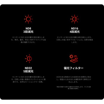 Ace Pro 2用のNDフィルター4枚セット。ND8、ND16、ND32、PLフィルターから選ぶことで、どのような照明環境でもバランスのとれた色とコントラストが得られます。シネマティックな雰囲気やモーションブラー効果を簡単に作ることができます。