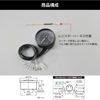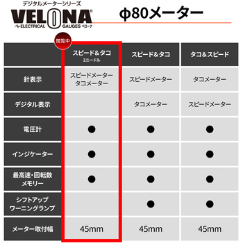 Φ80のステンレスボディに球面レンズを組み合わせた2ニードルタイプのスピードメーターとタコメーター。