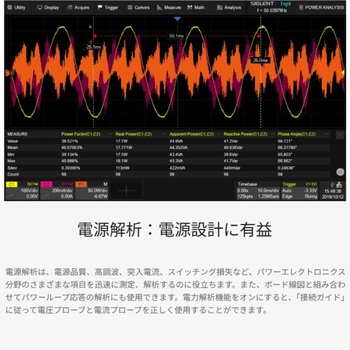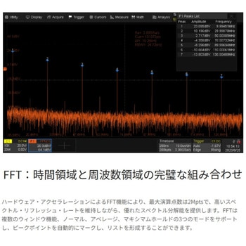 【多彩な解析機能と7種類のシリアルデコード】 I2C、SPI、UART、CAN、LIN、CAN FD、FlexRayに対応。FFTは2Mpts演算で高分解能を維持し、時間領域と周波数領域の両方を効率的に解析。電源解析やループ応答解析にも対応し、幅広いアプリケーションに活用可能です。