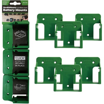 Hikoki/Metabo HPT/Hitachi 14.4V,18V,36V用バッテリーマウント(ホルダー)です。木材や壁・机に取り付けることで、バッテリーの整理整頓・安全保管の両立ができます。マウントに取り付ける時は” カチっ ”とロックがかかるため、振動や逆さ装着による落下は発生しません。3本の取付穴を利用して壁や棚の下などどこでも固定することができます。