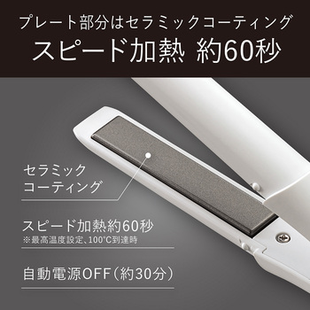 USB給電式モバイルヘアアイロン(本体側:USB Type-C)持ち運びやすい手のひらサイズ、キャップ付き専用USBケーブル付き(本体側USB Type-C対応)最高温度約190℃。セラミックコーティングプレート温度調節:2段階(150/190℃)、自動電源OFF:約30分海外使用OK。スピード加熱約60秒※