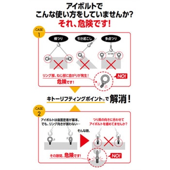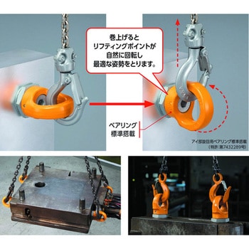 つり荷への取付方法は3Way。 手締め、工具使用いずれも可能。