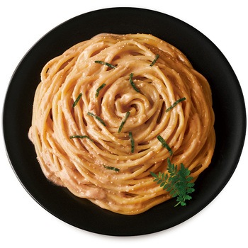 超もち生パスタのこだわり!それぞれのソースに相性ピッタリのこだわり麺を合わせております。麺とソースが絡む一体感を最後の一口までお楽しみください。濃厚明太子クリームは明太子の辛みと旨味が溶け込んだクリームソースにゆずの香り広がる味わいで、もちもち食感スパゲティを使用。風味豊かなのりをトッピングしています。