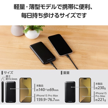 用途たっぷり使える10000mAhで長時間の外出時も安心。持ち運びしやすい薄型形状のモバイルバッテリーです。