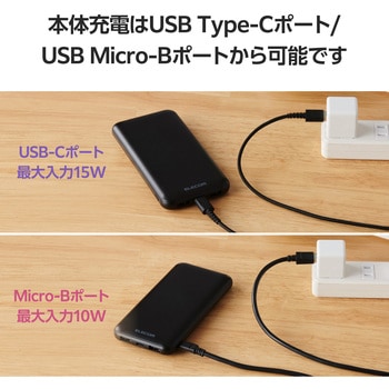 本製品はUSB Type-Cポート・USB Micro-Bポートから充電可能。USB Type-Cは最大15W、USB Micro-Bポートは最大10Wでの入力が可能。残量ゼロから約6時間で充電できます。