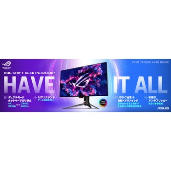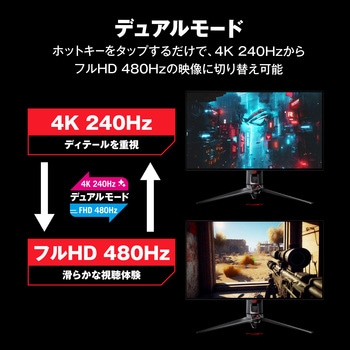 解像度4K/240HzとフルHD/480Hzの2種類のモードを切り替えることができるデュアルモード機能を備えた31.5インチゲーミングOLEDディスプレイ