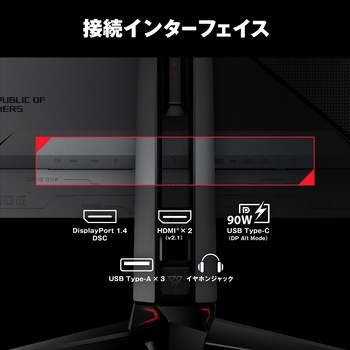 DisplayPort 1.4 (DSC)、 HDMI 2.1、90W電源供給を備えたUSB-Cなどの豊富な接続オプション