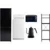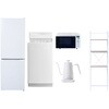 用途寮や事務所、休憩室などに。会社 オフィス 事務室 休憩室 仮眠室 ラウンジ 給湯室 寮 合宿 施設 宿泊 民泊 ホテル 旅館 宿舎 新生活 引越し 単身赴任 大学入学 スターターセット 家電セット 冷蔵庫 洗濯機 オーブンレンジ 温調ケトル 家電収納ラック仕様【洗濯機】幅56×奥行54.5×高さ98cm●容量:6.0kg(洗濯時)、1.5kg(風乾燥時)●8つのコース搭載(標準・毛布・おいそぎ・ドライ・ソフト・つけおき・部屋干し・槽洗浄)【オーブンレンジ】幅48.5×奥行37.6×高さ30.2cm●容量18L、フラットテーブル●高周波出力:650W(60Hzのみ)/500W/200W相当【ラック】幅59×奥行40×高さ192.5cm●棚やコンセントの高さを、モノに合わせて変更可能●2口コンセント付き(計1500Wまで)でよく使う家電や雑貨をすっきりひとまとめ【冷蔵庫】幅47.4×奥行50.6×高さ144cm●容量:157L(冷蔵109L/冷凍48L)●年間消費電力量:268kWh/年(50Hz/60Hz)【電気ケトル】幅28.5×奥行18×高さ22.5cm●容量:800ml●温度設定範囲:60-100度の間で1度単位で温度調整可能セット内容洗濯機、冷蔵庫、オーブンレンジ、温調ケトル、家電収納ラック保証期間1年(ラック以外)内容量1セット