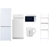 用途寮や事務所、休憩室などに。会社 オフィス 事務室 休憩室 仮眠室 ラウンジ 給湯室 寮 合宿 施設 宿泊 民泊 ホテル 旅館 宿舎 新生活 引越し 単身赴任 大学入学 スターターセット 家電セット 冷蔵庫 洗濯機 オーブンレンジ 電気ケトル 家電収納ラック仕様【洗濯機】幅56×奥行54.5×高さ98cm●容量:6.0kg(洗濯時)、1.5kg(風乾燥時)●8つのコース搭載(標準・毛布・おいそぎ・ドライ・ソフト・つけおき・部屋干し・槽洗浄)【オーブンレンジ】幅48.5×奥行37.6×高さ30.2cm●容量18L、フラットテーブル●高周波出力:650W(60Hzのみ)/500W/200W相当【ラック】幅59×奥行40×高さ192.5cm●棚やコンセントの高さを、モノに合わせて変更可能●2口コンセント付き(計1500Wまで)でよく使う家電や雑貨をすっきりひとまとめ【冷蔵庫】幅47.4×奥行50.6×高さ144cm●容量:157L(冷蔵109L/冷凍48L)●年間消費電力量:268kWh/年(50Hz/60Hz)【電気ケトル】幅21.5×奥行15×高さ18.5cm●容量:1.0L●空焚き防止機能搭載セット内容洗濯機、冷蔵庫、オーブンレンジ、電気ケトル、家電収納ラック保証期間1年(ラック以外)内容量1セット