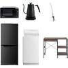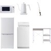 用途寮や事務所、休憩室などに。会社 オフィス 事務室 休憩室 仮眠室 ラウンジ 給湯室 寮 合宿 施設 宿泊 民泊 ホテル 旅館 宿舎 新生活 引越し 単身赴任 大学入学 スターターセット 家電セット 冷蔵庫 洗濯機 電子レンジ 温調ケトル スティッククリーナー レンジラック適合冷蔵庫仕様:幅47.4×奥行49.5×高さ113cm、容量:106L(冷蔵室73L/冷凍室33L)、年間消費電力量:268kWh/年(50Hz/60Hz)セット内容洗濯機、冷蔵庫、電子レンジ、温調ケトル、スティッククリーナー、レンジラックサイズ(cm)(掃除機仕様)スティック時:幅24×奥行13×高さ111cm、ハンディ時:幅10×奥行10.5×高さ48cm、スティック&ハンディの2WAY、吸込仕事率:40W対応洗濯機仕様:幅56×奥行54.5×高さ98cm、容量:6.0kg(洗濯時)、1.5kg(風乾燥時)、8つのコース搭載(標準・毛布・おいそぎ・ドライ・ソフト・つけおき・部屋干し・槽洗浄)レンジ電子レンジ仕様:幅44×奥行32.5×高さ25.5cm、容量17L、ターンテーブル、高周波出力:50Hz(500W、200W相当)、60Hz(650W、500W、200W相当)保証期間1年(ラック以外)適合ラック●幅102.5×奥行46.5×高さ85.5cm●棚やコンセントの高さを、モノに合わせて変更可能●2口コンセント付き(計1500Wまで)でよく使う家電や雑貨をすっきりひとまとめ電気仕様ケトル:幅28.5×奥行18×高さ22.5cm、容量:800ml、温度設定範囲:60-100度の間で1度単位で温度調整可能内容量1セット