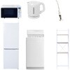 用途寮や事務所、休憩室などに。会社 オフィス 事務室 休憩室 仮眠室 ラウンジ 給湯室 寮 合宿 施設 宿泊 民泊 ホテル 旅館 宿舎 新生活 引越し 単身赴任 大学入学 スターターセット 家電セット 冷蔵庫 洗濯機 オーブンレンジ 電気ケトル スティッククリーナー 家電収納ラック仕様【洗濯機】幅56×奥行54.5×高さ98cm●容量:6.0kg(洗濯時)、1.5kg(風乾燥時)●8つのコース搭載(標準・毛布・おいそぎ・ドライ・ソフト・つけおき・部屋干し・槽洗浄)【オーブンレンジ】幅48.5×奥行37.6×高さ30.2cm●容量18L、フラットテーブル●高周波出力:650W(60Hzのみ)/500W/200W相当【ラック】幅59×奥行40×高さ192.5cm●棚やコンセントの高さを、モノに合わせて変更可能●2口コンセント付き(計1500Wまで)でよく使う家電や雑貨をすっきりひとまとめ【冷蔵庫】幅47.4×奥行50.6×高さ144cm●容量:157L(冷蔵109L/冷凍48L)●年間消費電力量:268kWh/年(50Hz/60Hz)【掃除機】スティック時サイズ:幅24×奥行13×高さ111cm●ハンディ時サイズ:幅10×奥行10.5×高さ48cm●スティック&ハンディの2WAY●吸込仕事率:40W【電気ケトル】幅21.5×奥行15×高さ18.5cm●容量:1.0L●空焚き防止機能搭載セット内容洗濯機、冷蔵庫、オーブンレンジ、電気ケトル、スティッククリーナー、家電収納ラック保証期間1年(ラック以外)内容量1セット