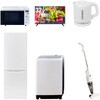 用途寮や事務所、休憩室などに。会社 オフィス 事務室 休憩室 仮眠室 ラウンジ 給湯室 寮 合宿 施設 宿泊 民泊 ホテル 旅館 宿舎 新生活 引越し 単身赴任 大学入学 スターターセット 家電セット 冷蔵庫 洗濯機 オーブンレンジ 液晶テレビ 電気ケトル スティッククリーナー適合冷蔵庫仕様:幅50×奥行56×高さ142.2cm、容量:173L(冷蔵室121L/冷凍室52L)、年間消費電力量:250kWh/年(50Hz/60Hz)セット内容洗濯機、冷蔵庫、オーブンレンジ、液晶テレビ、電気ケトル、スティッククリーナーサイズ(cm)(掃除機仕様)スティック時:幅24×奥行13×高さ111cm、ハンディ時:幅10×奥行10.5×高さ48cm、スティック&ハンディの2WAY、吸込仕事率:40W対応洗濯機仕様:幅60×奥行59.5×高さ94.5cm、容量:8.0kg(洗濯時)、1.5kg(風乾燥時)、8つのコース搭載(標準・毛布・おいそぎ・ドライ・ソフト・つけおき・部屋干し・槽洗浄)寸法(cm)(TV仕様)本体:幅71.6×奥行9.3×高さ 42.4、スタンド取付時サイズ:幅71.6×奥行19.9×高さ47.4、サイズ:32V型、2K対応ハイビジョン液晶テレビレンジオーブンレンジ仕様:幅48.5×奥行37.6×高さ30.2cm、容量18L、フラットテーブル、高周波出力:650W(60Hzのみ)/500W/200W相当保証期間1年電気仕様ケトル:幅21.5×奥行15×高さ18.5cm、容量:1.0L、空焚き防止機能搭載内容量1セット