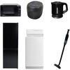 用途寮や事務所、休憩室などに。会社 オフィス 事務室 休憩室 仮眠室 ラウンジ 給湯室 寮 合宿 施設 宿泊 民泊 ホテル 旅館 宿舎 新生活 引越し 単身赴任 大学入学 スターターセット 家電セット 冷蔵庫 洗濯機 電子レンジ 炊飯器 電気ケトル 軽量クリーナー適合冷蔵庫仕様:幅47.4×奥行50.6×高さ144cm、容量:157L(冷蔵109L/冷凍48L)、年間消費電力量:268kWh/年(50Hz/60Hz)セット内容洗濯機、冷蔵庫、電子レンジ、炊飯器、電気ケトル、軽量クリーナーサイズ(cm)(掃除機仕様)スティック時:幅22.6×奥行10.3×高さ100、ハンディ時:幅7.5×奥行7.5×高さ46、わずか870gの軽量クリーナー、吸込仕事率:(パワフル)46W、(標準)23W、(弱)15W対応洗濯機仕様:幅56×奥行54.5×高さ98cm、容量:6.0kg(洗濯時)、1.5kg(風乾燥時)、8つのコース搭載(標準・毛布・おいそぎ・ドライ・ソフト・つけおき・部屋干し・槽洗浄)レンジ電子レンジ仕様:幅44×奥行32.5×高さ25.5cm、容量17L、ターンテーブル、高周波出力:50Hz(500W、200W相当)、60Hz(650W、500W、200W相当)保証期間1年寸法(幅W×奥行D×高さH)(cm)炊飯器仕様:幅21.5×奥行25.8×高さ20.8、炊飯容量:3.0合炊き、11種の炊き分けメニュー:白米ふつう、白米やわらかめ、白米かため、省エネ、早炊き、お湯炊き、パン、玄米、雑穀米、おかゆ、炊込み電気仕様ケトル:幅21.5×奥行15×高さ18.5cm、容量:1.0L、空焚き防止機能搭載内容量1セット