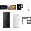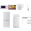 用途寮や事務所、休憩室などに。会社 オフィス 事務室 休憩室 仮眠室 ラウンジ 給湯室 寮 合宿 施設 宿泊 民泊 ホテル 旅館 宿舎 新生活 引越し 単身赴任 大学入学 スターターセット 家電セット 冷蔵庫 洗濯機 電子レンジ 液晶テレビ 電気ケトル スティッククリーナー レンジラックその他冷蔵庫仕様:幅47.4×奥行49.5×高さ113cm、容量:106L(冷蔵室73L/冷凍室33L)、年間消費電力量:268kWh/年(50Hz/60Hz)適合洗濯機仕様:幅56×奥行54.5×高さ98cm、容量:6.0kg(洗濯時)、1.5kg(風乾燥時)、8つのコース搭載(標準・毛布・おいそぎ・ドライ・ソフト・つけおき・部屋干し・槽洗浄)セット内容洗濯機、冷蔵庫、電子レンジ、液晶テレビ、電気ケトル、スティッククリーナー、レンジラックサイズ(cm)掃除機仕様:スティック時:幅24×奥行13×高さ111、ハンディ時:幅10×奥行10.5×高さ48、スティック&ハンディの2WAY、吸込仕事率:40W対応電子レンジ仕様:幅44×奥行32.5×高さ25.5cm、容量17L、ターンテーブル、高周波出力:50Hz(500W、200W相当)、60Hz(650W、500W、200W相当)寸法(cm)TV仕様:本体:幅71.6×奥行9.3×高さ 42.4、スタンド取付時サイズ:幅71.6×奥行19.9×高さ47.4、サイズ:32V型、2K対応ハイビジョン液晶テレビ保証期間1年(ラック以外)適合ラック●幅102.5×奥行46.5×高さ85.5cm●棚やコンセントの高さを、モノに合わせて変更可能●2口コンセント付き(計1500Wまで)でよく使う家電や雑貨をすっきりひとまとめ電気仕様ケトル:幅21.5×奥行15×高さ18.5cm、容量:1.0L、空焚き防止機能搭載内容量1セット