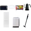用途寮や事務所、休憩室などに。会社 オフィス 事務室 休憩室 仮眠室 ラウンジ 給湯室 寮 合宿 施設 宿泊 民泊 ホテル 旅館 宿舎 新生活 引越し 単身赴任 大学入学 スターターセット 家電セット 冷蔵庫 洗濯機 オーブンレンジ シーリングライト 液晶テレビ 温調ケトル 軽量クリーナー仕様【TV】本体寸法:幅71.6×奥行9.3×高さ 42.4cm●スタンド取付時サイズ:幅71.6×奥行19.9×高さ47.4cm●サイズ:32V型●2K対応ハイビジョン液晶テレビ【オーブンレンジ】幅48.5×奥行37.6×高さ30.2cm●容量18L、フラットテーブル●高周波出力:650W(60Hzのみ)/500W/200W相当【シーリング】幅50×奥行50×高さ9.5cm●全光束:3500lm●30分、60分OFFタイマー付き【冷蔵庫】幅50×奥行56×高さ142.2cm●容量:173L(冷蔵室121L/冷凍室52L)●年間消費電力量:250kWh/年(50Hz/60Hz)【掃除機】スティック時サイズ:幅22.6×奥行10.3×高さ100cm●ハンディ時サイズ:幅7.5×奥行7.5×高さ46cm●わずか870gの軽量クリーナー●吸込仕事率:(パワフル)46W、(標準)23W、(弱)15W【洗濯機】幅60×奥行59.5×高さ94.5cm●容量:8.0kg(洗濯時)、1.5kg(風乾燥時)●8つのコース搭載(標準・毛布・おいそぎ・ドライ・ソフト・つけおき・部屋干し・槽洗浄)【電気ケトル】幅28.5×奥行18×高さ22.5cm●容量:800ml●温度設定範囲:60-100度の間で1度単位で温度調整可能セット内容洗濯機、冷蔵庫、オーブンレンジ、シーリングライト、液晶テレビ、温調ケトル、軽量クリーナー保証期間1年内容量1セット