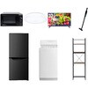 用途寮や事務所、休憩室などに。会社 オフィス 事務室 休憩室 仮眠室 ラウンジ 給湯室 寮 合宿 施設 宿泊 民泊 ホテル 旅館 宿舎 新生活 引越し 単身赴任 大学入学 スターターセット 家電セット 冷蔵庫 洗濯機 電子レンジ シーリングライト 液晶テレビ 軽量クリーナー 家電収納ラックその他シーリング仕様:幅50×奥行50×高さ9.5cm、全光束:3500lm、30分、60分OFFタイマー付き適合冷蔵庫仕様:幅47.4×奥行49.5×高さ113cm、容量:106L(冷蔵室73L/冷凍室33L)、年間消費電力量:268kWh/年(50Hz/60Hz)セット内容洗濯機、冷蔵庫、電子レンジ、シーリングライト、液晶テレビ、軽量クリーナー、家電収納ラックサイズ(cm)(掃除機仕様)スティック時:幅22.6×奥行10.3×高さ100、ハンディ時:幅7.5×奥行7.5×高さ46、わずか870gの軽量クリーナー、吸込仕事率:(パワフル)46W、(標準)23W、(弱)15W対応洗濯機仕様:幅56×奥行54.5×高さ98cm、容量:6.0kg(洗濯時)、1.5kg(風乾燥時)、8つのコース搭載(標準・毛布・おいそぎ・ドライ・ソフト・つけおき・部屋干し・槽洗浄)寸法(cm)TV仕様:本体:幅71.6×奥行9.3×高さ 42.4、スタンド取付時サイズ:幅71.6×奥行19.9×高さ47.4、サイズ:32V型、2K対応ハイビジョン液晶テレビレンジ電子レンジ仕様:幅44×奥行32.5×高さ25.5cm、容量17L、ターンテーブル、高周波出力:50Hz(500W、200W相当)、60Hz(650W、500W、200W相当)保証期間1年(ラック以外)適合ラック●幅59×奥行40×高さ192.5cm●棚やコンセントの高さを、モノに合わせて変更可能●2口コンセント付き(計1500Wまで)でよく使う家電や雑貨をすっきりひとまとめ内容量1セット