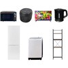 用途寮や事務所、休憩室などに。会社 オフィス 事務室 休憩室 仮眠室 ラウンジ 給湯室 寮 合宿 施設 宿泊 民泊 ホテル 旅館 宿舎 新生活 引越し 単身赴任 大学入学 スターターセット 家電セット 冷蔵庫 洗濯機 オーブンレンジ 炊飯器 液晶テレビ 電気ケトル 家電収納ラック適合冷蔵庫仕様:幅50×奥行56×高さ142.2cm、容量:173L(冷蔵室121L/冷凍室52L)、年間消費電力量:250kWh/年(50Hz/60Hz)セット内容洗濯機、冷蔵庫、オーブンレンジ、炊飯器、液晶テレビ、電気ケトル、家電収納ラック対応洗濯機仕様:幅60×奥行59.5×高さ94.5cm、容量:8.0kg(洗濯時)、1.5kg(風乾燥時)、8つのコース搭載(標準・毛布・おいそぎ・ドライ・ソフト・つけおき・部屋干し・槽洗浄)寸法(cm)(TV仕様)本体:幅71.6×奥行9.3×高さ 42.4、スタンド取付時サイズ:幅71.6×奥行19.9×高さ47.4、サイズ:32V型、2K対応ハイビジョン液晶テレビレンジオーブンレンジ仕様:幅48.5×奥行37.6×高さ30.2cm、容量18L、フラットテーブル、高周波出力:650W(60Hzのみ)/500W/200W相当保証期間1年(ラック以外)寸法(幅W×奥行D×高さH)(cm)炊飯器仕様:幅21.5×奥行25.8×高さ20.8、炊飯容量:3.0合炊き、11種の炊き分けメニュー:白米ふつう、白米やわらかめ、白米かため、省エネ、早炊き、お湯炊き、パン、玄米、雑穀米、おかゆ、炊込み適合ラック●幅59×奥行40×高さ192.5cm●棚やコンセントの高さを、モノに合わせて変更可能●2口コンセント付き(計1500Wまで)でよく使う家電や雑貨をすっきりひとまとめ電気仕様ケトル:幅21.5×奥行15×高さ18.5cm、容量:1.0L、空焚き防止機能搭載内容量1セット