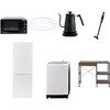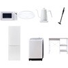 用途寮や事務所、休憩室などに。会社 オフィス 事務室 休憩室 仮眠室 ラウンジ 給湯室 寮 合宿 施設 宿泊 民泊 ホテル 旅館 宿舎 新生活 引越し 単身赴任 大学入学 スターターセット 家電セット 冷蔵庫 洗濯機 電子レンジ シーリングライト 温調ケトル 軽量クリーナー レンジラックその他シーリング仕様:幅50×奥行50×高さ9.5cm、全光束:3500lm、30分、60分OFFタイマー付き適合冷蔵庫仕様:幅50×奥行56×高さ142.2cm、容量:173L(冷蔵室121L/冷凍室52L)、年間消費電力量:250kWh/年(50Hz/60Hz)セット内容洗濯機、冷蔵庫、電子レンジ、シーリングライト、温調ケトル、軽量クリーナー、レンジラックサイズ(cm)(掃除機仕様)スティック時:幅22.6×奥行10.3×高さ100、ハンディ時:幅7.5×奥行7.5×高さ46、わずか870gの軽量クリーナー、吸込仕事率:(パワフル)46W、(標準)23W、(弱)15W対応洗濯機仕様:幅60×奥行59.5×高さ94.5cm、容量:8.0kg(洗濯時)、1.5kg(風乾燥時)、8つのコース搭載(標準・毛布・おいそぎ・ドライ・ソフト・つけおき・部屋干し・槽洗浄)レンジ電子レンジ仕様:幅44×奥行32.5×高さ25.5cm、容量17L、ターンテーブル、高周波出力:50Hz(500W、200W相当)、60Hz(650W、500W、200W相当)保証期間1年(ラック以外)適合ラック●幅102.5×奥行46.5×高さ85.5cm●棚やコンセントの高さを、モノに合わせて変更可能●2口コンセント付き(計1500Wまで)でよく使う家電や雑貨をすっきりひとまとめ電気仕様ケトル:幅28.5×奥行18×高さ22.5cm、容量:800ml、温度設定範囲:60-100度の間で1度単位で温度調整可能内容量1セット