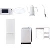 用途寮や事務所、休憩室などに。会社 オフィス 事務室 休憩室 仮眠室 ラウンジ 給湯室 寮 合宿 施設 宿泊 民泊 ホテル 旅館 宿舎 新生活 引越し 単身赴任 大学入学 スターターセット 家電セット 冷蔵庫 洗濯機 電子レンジ シーリングライト 温調ケトル スティッククリーナー レンジラックその他シーリング仕様:幅50×奥行50×高さ9.5cm、全光束:3500lm、30分、60分OFFタイマー付き適合冷蔵庫仕様:幅50×奥行56×高さ142.2cm、容量:173L(冷蔵室121L/冷凍室52L)、年間消費電力量:250kWh/年(50Hz/60Hz)セット内容洗濯機、冷蔵庫、電子レンジ、シーリングライト、温調ケトル、スティッククリーナー、レンジラックサイズ(cm)(掃除機仕様)スティック時:幅24×奥行13×高さ111、ハンディ時:幅10×奥行10.5×高さ48、スティック&ハンディの2WAY、吸込仕事率:40W対応洗濯機仕様:幅60×奥行59.5×高さ94.5cm、容量:8.0kg(洗濯時)、1.5kg(風乾燥時)、8つのコース搭載(標準・毛布・おいそぎ・ドライ・ソフト・つけおき・部屋干し・槽洗浄)レンジ電子レンジ仕様:幅44×奥行32.5×高さ25.5cm、容量17L、ターンテーブル、高周波出力:50Hz(500W、200W相当)、60Hz(650W、500W、200W相当)保証期間1年(ラック以外)適合ラック●幅102.5×奥行46.5×高さ85.5cm●棚やコンセントの高さを、モノに合わせて変更可能●2口コンセント付き(計1500Wまで)でよく使う家電や雑貨をすっきりひとまとめ電気仕様ケトル:幅28.5×奥行18×高さ22.5cm、容量:800ml、温度設定範囲:60-100度の間で1度単位で温度調整可能内容量1セット
