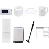 用途寮や事務所、休憩室などに。会社 オフィス 事務室 休憩室 仮眠室 ラウンジ 給湯室 寮 合宿 施設 宿泊 民泊 ホテル 旅館 宿舎 新生活 引越し 単身赴任 大学入学 スターターセット 家電セット 冷蔵庫 洗濯機 電子レンジ 炊飯器 シーリングライト 電気ケトル 軽量クリーナー レンジラックその他シーリング仕様:幅50×奥行50×高さ9.5cm、全光束:3500lm、30分、60分OFFタイマー付き適合冷蔵庫仕様:幅50×奥行56×高さ142.2cm、容量:173L(冷蔵室121L/冷凍室52L)、年間消費電力量:250kWh/年(50Hz/60Hz)セット内容洗濯機、冷蔵庫、電子レンジ、炊飯器、シーリングライト、電気ケトル、軽量クリーナー、レンジラックサイズ(cm)掃除機仕様:スティック時:幅22.6×奥行10.3×高さ100、ハンディ時:幅7.5×奥行7.5×高さ46、わずか870gの軽量クリーナー、吸込仕事率:(パワフル)46W、(標準)23W、(弱)15W対応洗濯機仕様:幅60×奥行59.5×高さ94.5cm、容量:8.0kg(洗濯時)、1.5kg(風乾燥時)、8つのコース搭載(標準・毛布・おいそぎ・ドライ・ソフト・つけおき・部屋干し・槽洗浄)レンジ電子レンジ仕様:幅44×奥行32.5×高さ25.5cm、容量17L、ターンテーブル、高周波出力:50Hz(500W、200W相当)、60Hz(650W、500W、200W相当)保証期間1年(ラック以外)寸法(幅W×奥行D×高さH)(cm)炊飯器仕様:21.5×25.8×20.8、炊飯容量:3.0合炊き、11種の炊き分けメニュー:白米ふつう、白米やわらかめ、白米かため、省エネ、早炊き、お湯炊き、パン、玄米、雑穀米、おかゆ、炊込み適合ラック●幅102.5×奥行46.5×高さ85.5cm●棚やコンセントの高さを、モノに合わせて変更可能●2口コンセント付き(計1500Wまで)でよく使う家電や雑貨をすっきりひとまとめ電気仕様ケトル:幅21.5×奥行15×高さ18.5cm、容量:1.0L、空焚き防止機能搭載内容量1セット