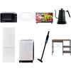 用途寮や事務所、休憩室などに。会社 オフィス 事務室 休憩室 仮眠室 ラウンジ 給湯室 寮 合宿 施設 宿泊 民泊 ホテル 旅館 宿舎 新生活 引越し 単身赴任 大学入学 スターターセット 家電セット 冷蔵庫 洗濯機 電子レンジ シーリングライト 液晶テレビ 温調ケトル 軽量クリーナー レンジラックその他シーリング仕様:幅50×奥行50×高さ9.5cm、全光束:3500lm、30分、60分OFFタイマー付き適合冷蔵庫仕様:幅50×奥行56×高さ142.2cm、容量:173L(冷蔵室121L/冷凍室52L)、年間消費電力量:250kWh/年(50Hz/60Hz)セット内容洗濯機、冷蔵庫、電子レンジ、シーリングライト、液晶テレビ、温調ケトル、軽量クリーナー、レンジラックサイズ(cm)(掃除機仕様)スティック時:幅22.6×奥行10.3×高さ100、ハンディ時:幅7.5×奥行7.5×高さ46、わずか870gの軽量クリーナー、吸込仕事率:(パワフル)46W、(標準)23W、(弱)15W対応洗濯機仕様:幅60×奥行59.5×高さ94.5cm、容量:8.0kg(洗濯時)、1.5kg(風乾燥時)、8つのコース搭載(標準・毛布・おいそぎ・ドライ・ソフト・つけおき・部屋干し・槽洗浄)寸法(cm)TV仕様:本体:幅71.6×奥行9.3×高さ 42.4、スタンド取付時サイズ:幅71.6×奥行19.9×高さ47.4、サイズ:32V型、2K対応ハイビジョン液晶テレビレンジ電子レンジ仕様:幅44×奥行32.5×高さ25.5cm、容量17L、ターンテーブル、高周波出力:50Hz(500W、200W相当)、60Hz(650W、500W、200W相当)保証期間1年(ラック以外)適合ラック●幅102.5×奥行46.5×高さ85.5cm●棚やコンセントの高さを、モノに合わせて変更可能●2口コンセント付き(計1500Wまで)でよく使う家電や雑貨をすっきりひとまとめ電気仕様ケトル:幅28.5×奥行18×高さ22.5cm、容量:800ml、温度設定範囲:60-100度の間で1度単位で温度調整可能内容量1セット