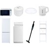 用途寮や事務所、休憩室などに。会社 オフィス 事務室 休憩室 仮眠室 ラウンジ 給湯室 寮 合宿 施設 宿泊 民泊 ホテル 旅館 宿舎 新生活 引越し 単身赴任 大学入学 スターターセット 家電セット 冷蔵庫 洗濯機 オーブンレンジ 炊飯器 シーリングライト 電気ケトル 軽量クリーナー 家電収納ラック仕様【洗濯機】幅56×奥行54.5×高さ98cm●容量:6.0kg(洗濯時)、1.5kg(風乾燥時)●8つのコース搭載(標準・毛布・おいそぎ・ドライ・ソフト・つけおき・部屋干し・槽洗浄)【オーブンレンジ】幅48.5×奥行37.6×高さ30.2cm●容量18L、フラットテーブル●高周波出力:650W(60Hzのみ)/500W/200W相当【シーリング】幅50×奥行50×高さ9.5cm●全光束:3500lm●30分、60分OFFタイマー付き【ラック】幅59×奥行40×高さ192.5cm●棚やコンセントの高さを、モノに合わせて変更可能●2口コンセント付き(計1500Wまで)でよく使う家電や雑貨をすっきりひとまとめ【冷蔵庫】幅47.4×奥行50.6×高さ144cm●容量:157L(冷蔵109L/冷凍48L)●年間消費電力量:268kWh/年(50Hz/60Hz)【掃除機】スティック時サイズ:幅22.6×奥行10.3×高さ100cm●ハンディ時サイズ:幅7.5×奥行7.5×高さ46cm●わずか870gの軽量クリーナー●吸込仕事率:(パワフル)46W、(標準)23W、(弱)15W【炊飯器】幅21.5×奥行25.8×高さ20.8cm●炊飯容量:3.0合炊き●11種の炊き分けメニュー:白米ふつう、白米やわらかめ、白米かため、省エネ、早炊き、お湯炊き、パン、玄米、雑穀米、おかゆ、炊込み【電気ケトル】幅21.5×奥行15×高さ18.5cm●容量:1.0L●空焚き防止機能搭載セット内容洗濯機、冷蔵庫、オーブンレンジ、炊飯器、シーリングライト、電気ケトル、軽量クリーナー、家電収納ラック保証期間1年(ラック以外)内容量1セット