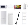 用途寮や事務所、休憩室などに。会社 オフィス 事務室 休憩室 仮眠室 ラウンジ 給湯室 寮 合宿 施設 宿泊 民泊 ホテル 旅館 宿舎 新生活 引越し 単身赴任 大学入学 スターターセット 家電セット 冷蔵庫 洗濯機 電子レンジ シーリングライト 液晶テレビ 温調ケトル 軽量クリーナー 家電収納ラックその他シーリング仕様:幅50×奥行50×高さ9.5cm、全光束:3500lm、30分、60分OFFタイマー付き適合冷蔵庫仕様:幅47.4×奥行49.5×高さ113cm、容量:106L(冷蔵室73L/冷凍室33L)、年間消費電力量:268kWh/年(50Hz/60Hz)セット内容洗濯機、冷蔵庫、電子レンジ、シーリングライト、液晶テレビ、温調ケトル、軽量クリーナー、家電収納ラックサイズ(cm)(掃除機仕様)スティック時:幅22.6×奥行10.3×高さ100、ハンディ時:幅7.5×奥行7.5×高さ46、わずか870gの軽量クリーナー、吸込仕事率:(パワフル)46W、(標準)23W、(弱)15W対応洗濯機仕様:幅56×奥行54.5×高さ98cm、容量:6.0kg(洗濯時)、1.5kg(風乾燥時)、8つのコース搭載(標準・毛布・おいそぎ・ドライ・ソフト・つけおき・部屋干し・槽洗浄)寸法(cm)TV仕様:本体:幅71.6×奥行9.3×高さ 42.4、スタンド取付時サイズ:幅71.6×奥行19.9×高さ47.4、サイズ:32V型、2K対応ハイビジョン液晶テレビレンジ電子レンジ仕様:幅44×奥行32.5×高さ25.5cm、容量17L、ターンテーブル、高周波出力:50Hz(500W、200W相当)、60Hz(650W、500W、200W相当)保証期間1年(ラック以外)適合ラック●幅59×奥行40×高さ192.5cm●棚やコンセントの高さを、モノに合わせて変更可能●2口コンセント付き(計1500Wまで)でよく使う家電や雑貨をすっきりひとまとめ電気仕様ケトル:幅28.5×奥行18×高さ22.5cm、容量:800ml、温度設定範囲:60-100度の間で1度単位で温度調整可能内容量1セット
