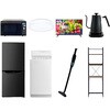 用途寮や事務所、休憩室などに。会社 オフィス 事務室 休憩室 仮眠室 ラウンジ 給湯室 寮 合宿 施設 宿泊 民泊 ホテル 旅館 宿舎 新生活 引越し 単身赴任 大学入学 スターターセット 家電セット 冷蔵庫 洗濯機 オーブンレンジ シーリングライト 液晶テレビ 温調ケトル 軽量クリーナー 家電収納ラック仕様【TV】本体寸法:幅71.6×奥行9.3×高さ 42.4cm●スタンド取付時サイズ:幅71.6×奥行19.9×高さ47.4cm●サイズ:32V型●2K対応ハイビジョン液晶テレビ【オーブンレンジ】幅48.5×奥行37.6×高さ30.2cm●容量18L、フラットテーブル●高周波出力:650W(60Hzのみ)/500W/200W相当【シーリング】幅50×奥行50×高さ9.5cm●全光束:3500lm●30分、60分OFFタイマー付き【ラック】幅59×奥行40×高さ192.5cm●棚やコンセントの高さを、モノに合わせて変更可能●2口コンセント付き(計1500Wまで)でよく使う家電や雑貨をすっきりひとまとめ【冷蔵庫】幅47.4×奥行49.5×高さ113cm●容量:106L(冷蔵室73L/冷凍室33L)●年間消費電力量:268kWh/年(50Hz/60Hz)【掃除機】スティック時サイズ:幅22.6×奥行10.3×高さ100cm●ハンディ時サイズ:幅7.5×奥行7.5×高さ46cm●わずか870gの軽量クリーナー●吸込仕事率:(パワフル)46W、(標準)23W、(弱)15W【洗濯機】幅56×奥行54.5×高さ98cm●容量:6.0kg(洗濯時)、1.5kg(風乾燥時)●8つのコース搭載(標準・毛布・おいそぎ・ドライ・ソフト・つけおき・部屋干し・槽洗浄)【電気ケトル】幅28.5×奥行18×高さ22.5cm●容量:800ml●温度設定範囲:60-100度の間で1度単位で温度調整可能セット内容洗濯機、冷蔵庫、オーブンレンジ、シーリングライト、液晶テレビ、温調ケトル、軽量クリーナー、家電収納ラック保証期間1年(ラック以外)内容量1セット