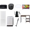 用途寮や事務所、休憩室などに。会社 オフィス 事務室 休憩室 仮眠室 ラウンジ 給湯室 寮 合宿 施設 宿泊 民泊 ホテル 旅館 宿舎 新生活 引越し 単身赴任 大学入学 スターターセット 家電セット 冷蔵庫 洗濯機 電子レンジ 炊飯器 シーリングライト 液晶テレビ 温調ケトル 軽量クリーナー レンジラックその他シーリング仕様:幅50×奥行50×高さ9.5cm、全光束:3500lm、30分、60分OFFタイマー付き適合冷蔵庫仕様:幅50×奥行56×高さ142.2cm、容量:173L(冷蔵室121L/冷凍室52L)、年間消費電力量:250kWh/年(50Hz/60Hz)セット内容洗濯機、冷蔵庫、電子レンジ、炊飯器、シーリングライト、液晶テレビ、温調ケトル、軽量クリーナー、レンジラックサイズ(cm)掃除機仕様:スティック時:幅22.6×奥行10.3×高さ100、ハンディ時:幅7.5×奥行7.5×高さ46、わずか870gの軽量クリーナー、吸込仕事率:(パワフル)46W、(標準)23W、(弱)15W対応洗濯機仕様:幅60×奥行59.5×高さ94.5cm、容量:8.0kg(洗濯時)、1.5kg(風乾燥時)、8つのコース搭載(標準・毛布・おいそぎ・ドライ・ソフト・つけおき・部屋干し・槽洗浄)寸法(cm)TV仕様:本体:幅71.6×奥行9.3×高さ 42.4、スタンド取付時サイズ:幅71.6×奥行19.9×高さ47.4、サイズ:32V型、2K対応ハイビジョン液晶テレビレンジ電子レンジ仕様:幅44×奥行32.5×高さ25.5cm、容量17L、ターンテーブル、高周波出力:50Hz(500W、200W相当)、60Hz(650W、500W、200W相当)保証期間1年(ラック以外)寸法(幅W×奥行D×高さH)(cm)炊飯器仕様:21.5×25.8×20.8、炊飯容量:3.0合炊き、11種の炊き分けメニュー:白米ふつう、白米やわらかめ、白米かため、省エネ、早炊き、お湯炊き、パン、玄米、雑穀米、おかゆ、炊込み適合ラック●幅102.5×奥行46.5×高さ85.5cm●棚やコンセントの高さを、モノに合わせて変更可能●2口コンセント付き(計1500Wまで)でよく使う家電や雑貨をすっきりひとまとめ電気仕様ケトル:幅28.5×奥行18×高さ22.5cm、容量:800ml、温度設定範囲:60-100度の間で1度単位で温度調整可能内容量1セット