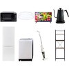 用途寮や事務所、休憩室などに。会社 オフィス 事務室 休憩室 仮眠室 ラウンジ 給湯室 寮 合宿 施設 宿泊 民泊 ホテル 旅館 宿舎 新生活 引越し 単身赴任 大学入学 スターターセット 家電セット 冷蔵庫 洗濯機 電子レンジ シーリングライト 液晶テレビ 温調ケトル スティッククリーナー 家電収納ラックその他シーリング仕様:幅50×奥行50×高さ9.5cm、全光束:3500lm、30分、60分OFFタイマー付き適合冷蔵庫仕様:幅50×奥行56×高さ142.2cm、容量:173L(冷蔵室121L/冷凍室52L)、年間消費電力量:250kWh/年(50Hz/60Hz)セット内容洗濯機、冷蔵庫、電子レンジ、シーリングライト、液晶テレビ、温調ケトル、スティッククリーナー、家電収納ラックサイズ(cm)(掃除機仕様)スティック時:幅24×奥行13×高さ111、ハンディ時:幅10×奥行10.5×高さ48、スティック&ハンディの2WAY、吸込仕事率:40W対応洗濯機仕様:幅60×奥行59.5×高さ94.5cm、容量:8.0kg(洗濯時)、1.5kg(風乾燥時)、8つのコース搭載(標準・毛布・おいそぎ・ドライ・ソフト・つけおき・部屋干し・槽洗浄)寸法(cm)TV仕様:本体:幅71.6×奥行9.3×高さ 42.4、スタンド取付時サイズ:幅71.6×奥行19.9×高さ47.4、サイズ:32V型、2K対応ハイビジョン液晶テレビレンジ電子レンジ仕様:幅44×奥行32.5×高さ25.5cm、容量17L、ターンテーブル、高周波出力:50Hz(500W、200W相当)、60Hz(650W、500W、200W相当)保証期間1年(ラック以外)適合ラック●幅59×奥行40×高さ192.5cm●棚やコンセントの高さを、モノに合わせて変更可能●2口コンセント付き(計1500Wまで)でよく使う家電や雑貨をすっきりひとまとめ電気仕様ケトル:幅28.5×奥行18×高さ22.5cm、容量:800ml、温度設定範囲:60-100度の間で1度単位で温度調整可能内容量1セット