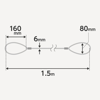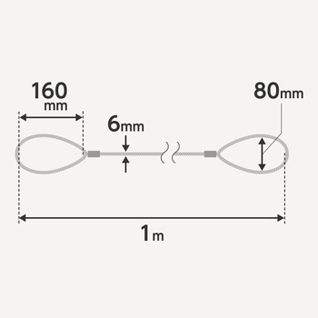 労働安全衛生規則第475条及びクレーン等安全規則第219条適合品です。JIS G 3525ワイヤロープ使用したアルミスリーブでロック止めした玉掛ワイヤです。