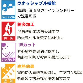 防炎、ウオッシャブル、UVカット率86%、遮熱率29.4%、採光率23.5%、遮像