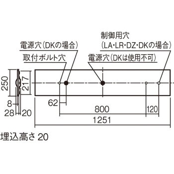 一体型LEDベースライト 下面開放型 天井埋込型 40形 一般タイプ 4000lm 幅250 非調光