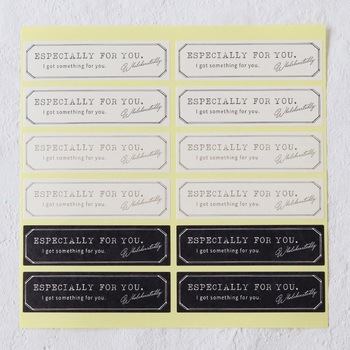 cottaオリジナルのラッピング用シールです。モノトーン3柄アソート1シートに12片付きメッセージ入りでギフトシーンに活躍します。英文:ESPECIALLY FOR YOU. …特別なあなたへI got something for you. …あなたの為にWholeheartedly …心を込めて