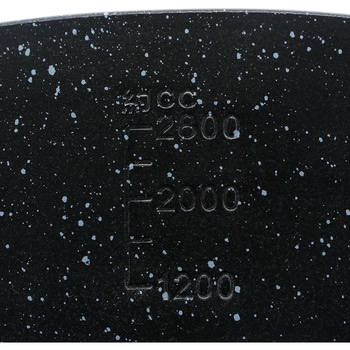 内面EKダイヤモンドコートマーブルなので傷に強く焦げつきにくいゆきひら鍋。注ぐときに便利な両口仕様。目盛付き刻印。IH・ガス火を含むオール熱源対応