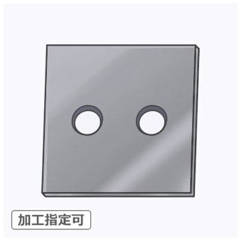 素材のサイズを1mm単位で指定可能。さらに、穴の種類(通し穴、タップ穴など)、サイズ、位置も自由に設定可能です。鉄、アルミ、ステンレスから材質を選んで加工できます。材質一覧(A5052P、S50C、SS400、SUS304)から選べます。