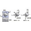 ・単列アンギュラ玉軸受は、接触角をもっているので、ラジアル荷重と一方向のアキシアル荷重または、合成荷重を受けるのに適しています。・構造上、ラジアル荷重がかかるとアキシアル分力が生じるので、2個を対向させて使用するか、2個以上を組み合せて使用します。・アンギュラ玉軸受は接触角の違いにより、同じ荷重を負荷した際に、玉と内輪、外輪の接触部の負荷状態が異なるために弾性変形量や接触部の応力が異なります。・アキシアル荷重を負荷した場合は、接触角が大きいほど転動体荷重は小さく接触部の負荷は軽減されます。・ラジアル荷重を負荷した場合は、接触角が小さいほど転動体荷重は小さく接触部の負荷は軽減されます。